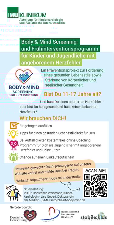 Hier eine kurze Zusammenfassung unseres durch die Deutsche Herzstiftung geförderten Projekts, zu dem wir Dich ❤️-lich einladen teilzunehmen.